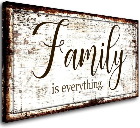 2.Family Signs for Home Decor Size: 20inchesx40inches.The Print Word:"Family is Everything",words to live by which will impress your family and friends.Living room art wall decor gathers everyone around with a heartfelt quote!
